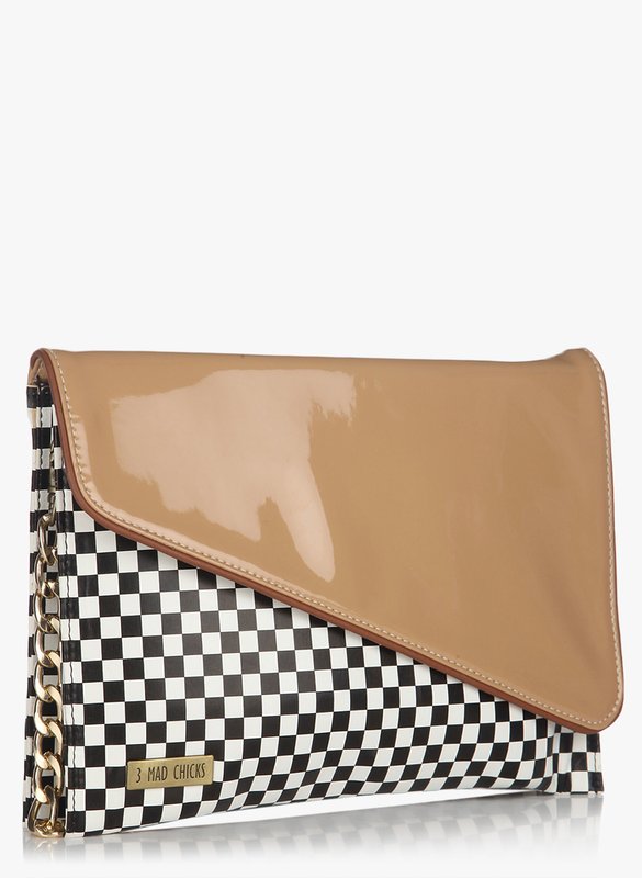 3 Mad Chicks Brown/Black Checks Envelope Sling Bag