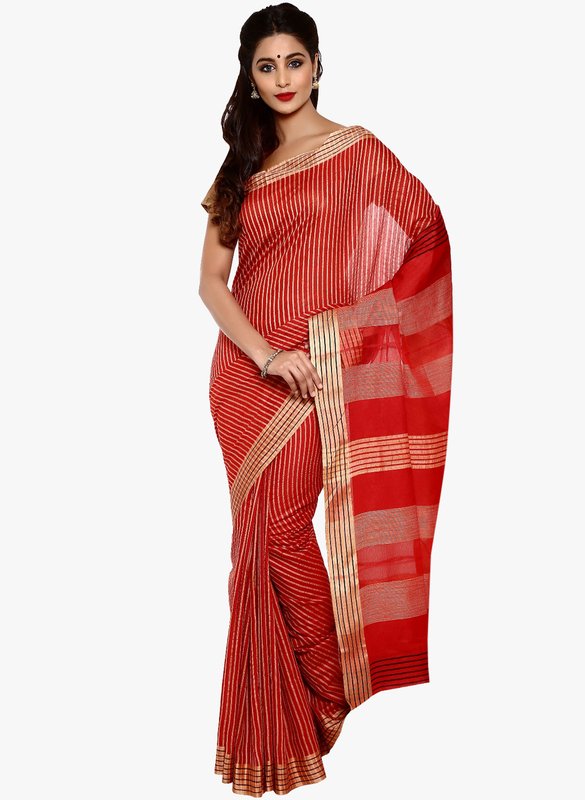 Aaboli Red Striped Saree