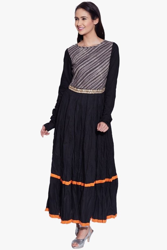 Flipkart has Aana Solid Women's Anarkali Kurta(Black) for Rs.2,999.00 - Rs.1,575.00 (Instant Discount) = Rs.1,424.00 with Free Shipping
