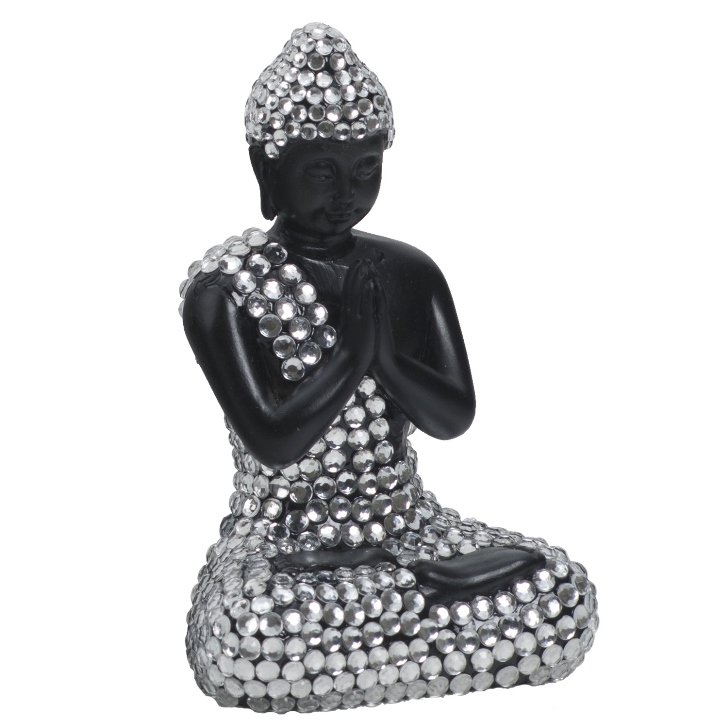 Aapno Rajasthan Beautiful Black And Silver Finish Joint Hands Buddha Showpiece
