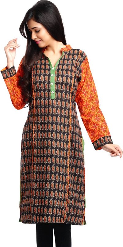 Flipkart has Aapno Rajasthan Casual Printed Women's Kurti(Black, Orange) for Rs.1,600.00 - Rs.801.00 (Instant Discount) = Rs.799.00 with Free Shipping