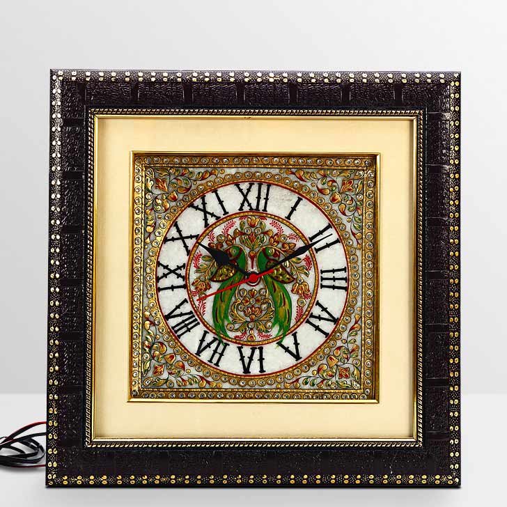Aapno Rajasthan Parrot Motif Marble Wall Clock