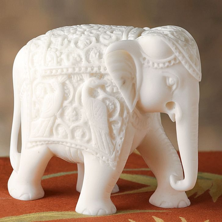 Aapno Rajasthan Royal Elephant Sculpture In White Marble