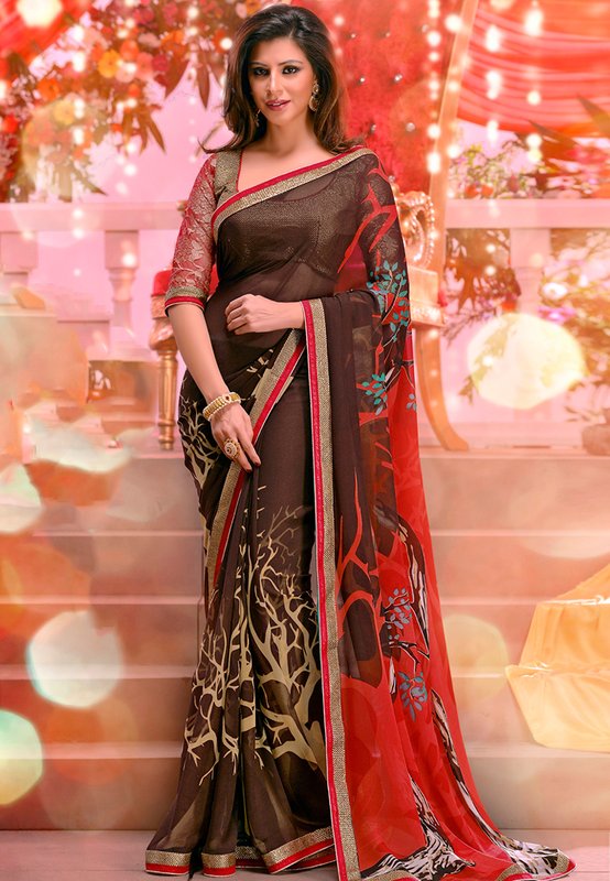 Jabong has Admyrin Brown Georgette Printed Saree for Rs.3,330.00 with Free Shipping