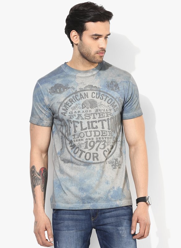 Jabong has Affliction Light Blue Printed Round Neck T-Shirt for Rs.4,999.00 - Rs.3,000.00 (Instant Discount) = Rs.1,999.00 with Free Shipping