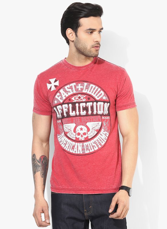 Jabong has Affliction Red Printed Round Neck T-Shirt for Rs.3,999.00 - Rs.2,400.00 (Instant Discount) = Rs.1,599.00 with Free Shipping