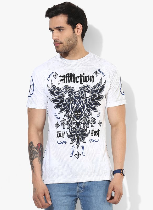 Jabong has Affliction White Printed Round Neck T-Shirt for Rs.4,999.00 - Rs.3,000.00 (Instant Discount) = Rs.1,999.00 with Free Shipping
