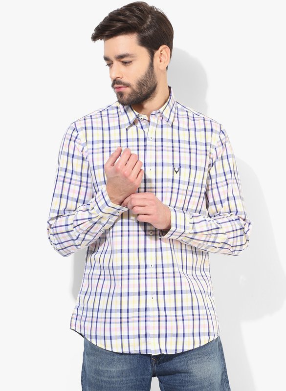 Allen Solly Blue Checked Regular Fit Casual Shirt