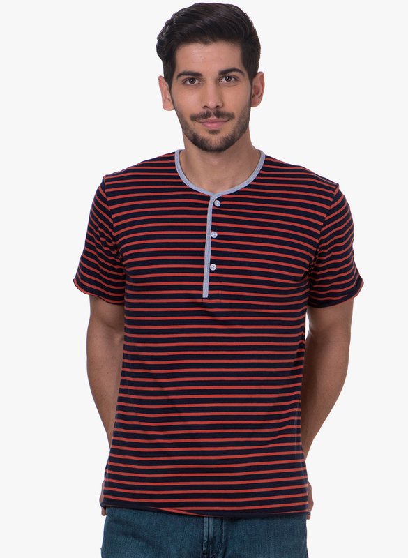 Jabong has Alley Men Navy Blue Striped Henley T-Shirt for Rs.850.00 with Free Shipping