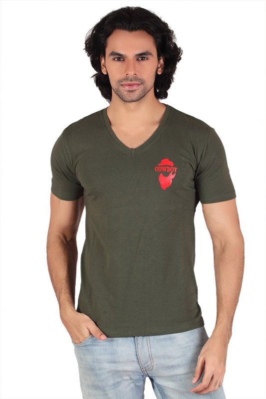 Anger Beast Printed Men's V-neck Green T-Shirt