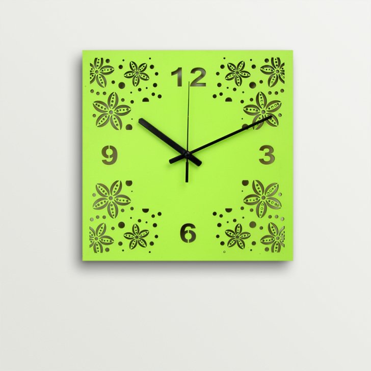 ArtEdge Green Flower Design Laser Cut Work Wall Clock