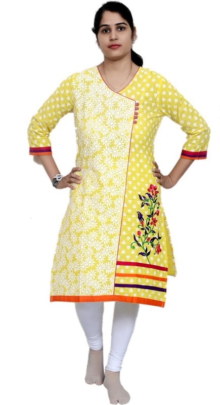 Flipkart has Artisan Embroidered, Floral Print Women's Straight Kurta(Yellow) for Rs.1,400.00 - Rs.825.00 (Instant Discount) = Rs.575.00 with Free Shipping