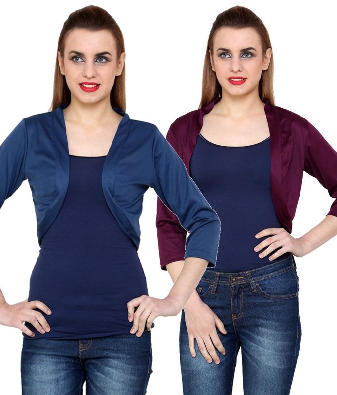 SnapDeal.com has At499 Combo of Blue and Purple Polyester Blend Shrug for Rs.698.00 - Rs.217.00 (Instant Discount) = Rs.481.00 with Free Shipping