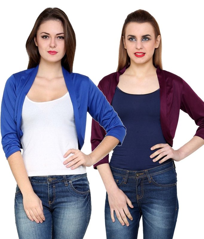 SnapDeal.com has At499 Combo of Blue and Purple Polyester Blend Shrug for Rs.698.00 - Rs.217.00 (Instant Discount) = Rs.481.00 with Free Shipping