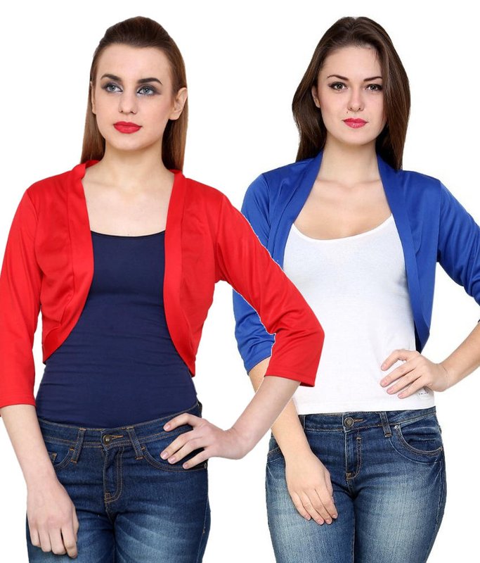 SnapDeal.com has At499 Combo of Red and Blue Polyester Blend Shrug for Rs.698.00 - Rs.217.00 (Instant Discount) = Rs.481.00 with Free Shipping