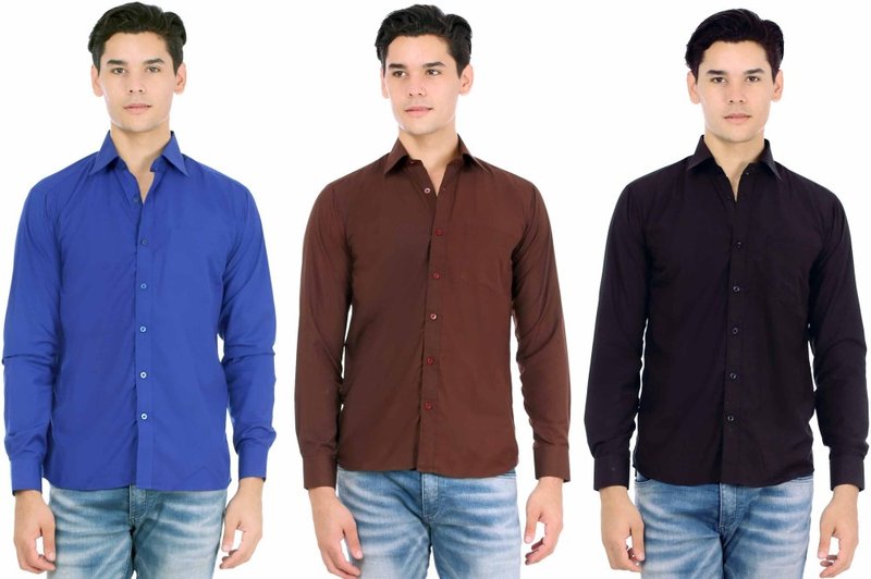 Flipkart has Atmosphere Men's Solid Formal Dark Blue, Brown, Black Shirt(Pack of 3) for Rs.2,299.00 - Rs.1,100.00 (Instant Discount) = Rs.1,199.00 with Free Shipping