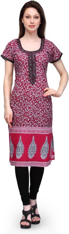 Aujjessa Casual Embroidered Women's Kurti(Pink)