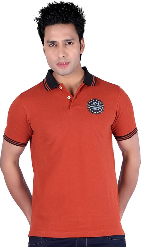 Austin Wood Solid Men's Polo Neck Red T-Shirt