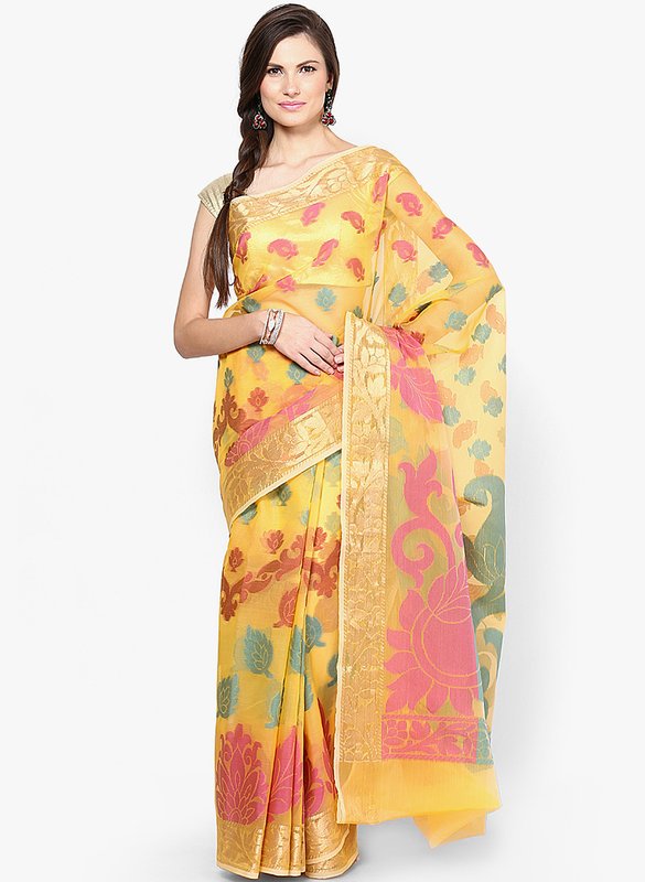 Jabong has Avishi Golden Solid Silk Blend Saree for Rs.1,999.00 with Free Shipping