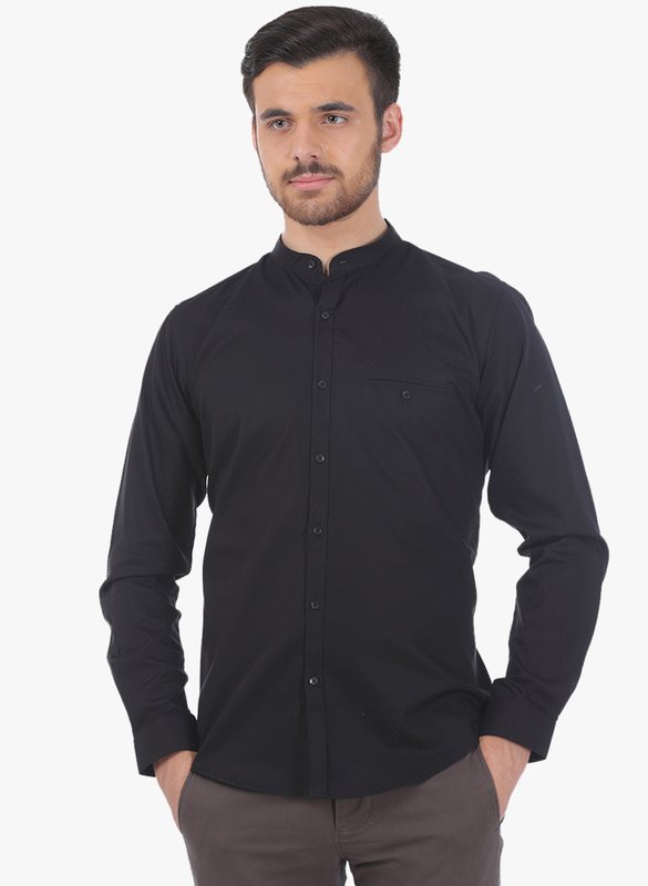 Basics Black Solid Slim Fit Casual Shirt