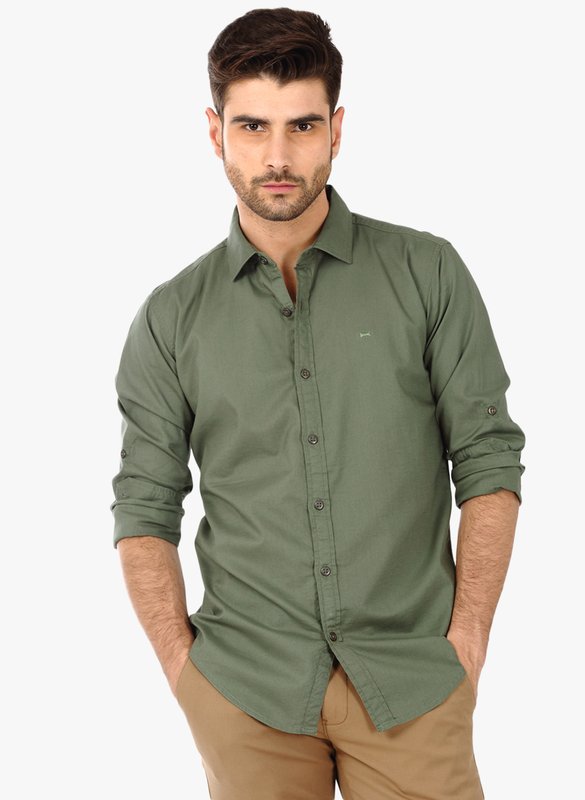 Jabong has Basics Green Solid Slim Fit Casual Shirt for Rs.1,499.00 with Free Shipping