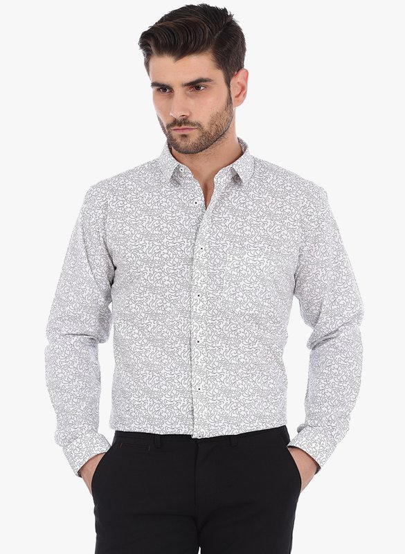 Basics Grey Printed Slim Fit Casual Shirt