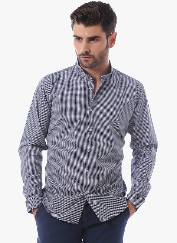 Basics Navy Blue Checked Slim Fit Casual Shirt
