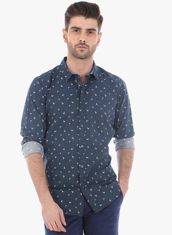 Jabong has Basics Navy Blue Printed Casual Shirt for Rs.1,599.00 with Free Shipping