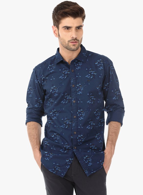 Jabong has Basics Navy Blue Printed Slim Fit Casual Shirt for Rs.1,599.00 with Free Shipping