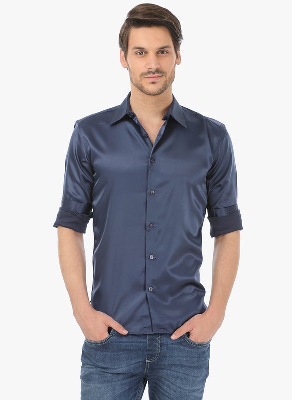 Jabong has Basics Navy Blue Solid Slim Fit Casual Shirt for Rs.1,499.00 with Free Shipping