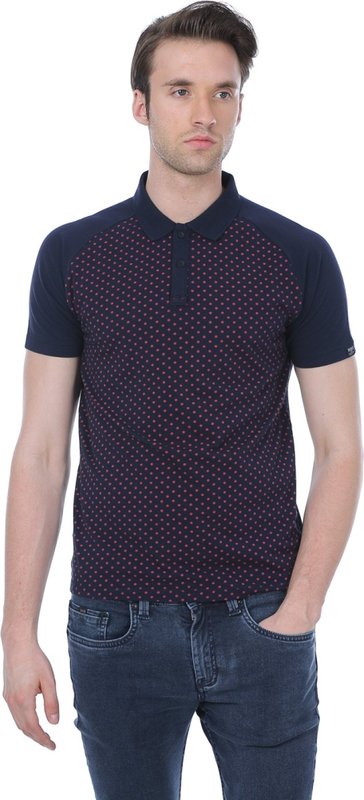 Basics Printed Men's Polo Neck Dark Blue T-Shirt