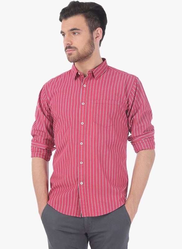 Jabong has Basics Red Striped Slim Fit Casual Shirt for Rs.1,499.00 - Rs.824.00 (Instant Discount) = Rs.675.00 with Free Shipping