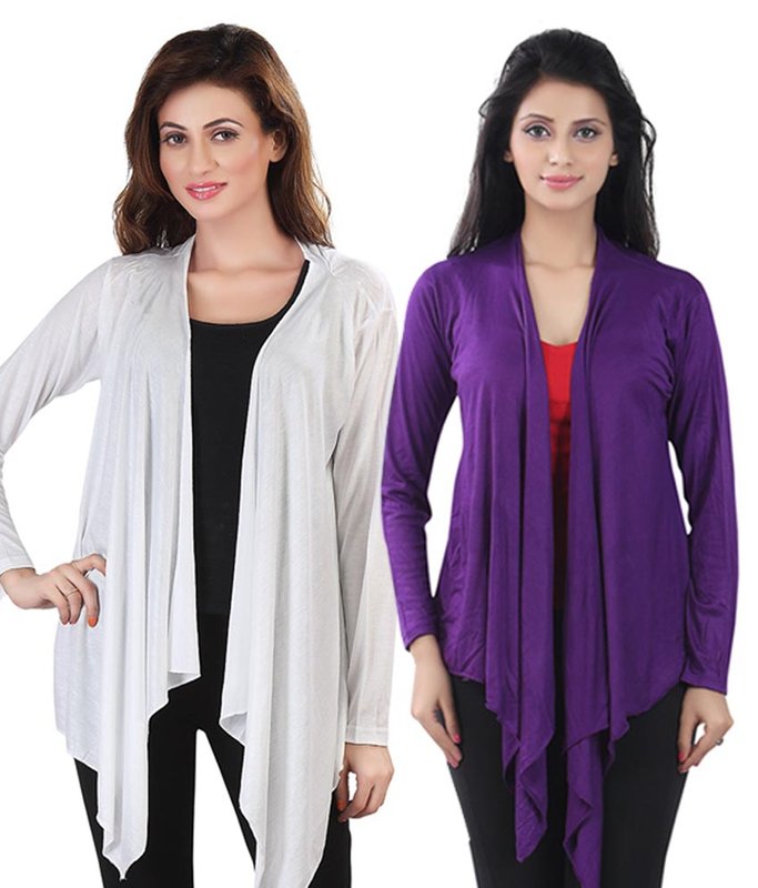 SnapDeal.com has Bfly White & Purple Long Shrugs Combo for Rs.1,198.00 - Rs.599.00 (Instant Discount) = Rs.599.00 with Free Shipping