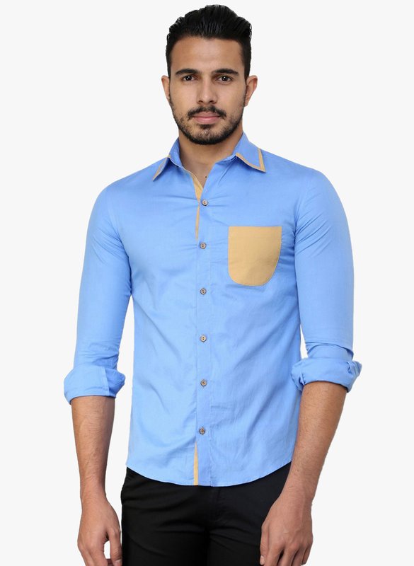 Blackbuk India Blue Solid Slim Fit Casual Shirt