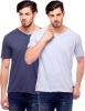 Blackburne Inc Self Design Men's V-neck Grey, Blue T-Shirt(Pack of 2)