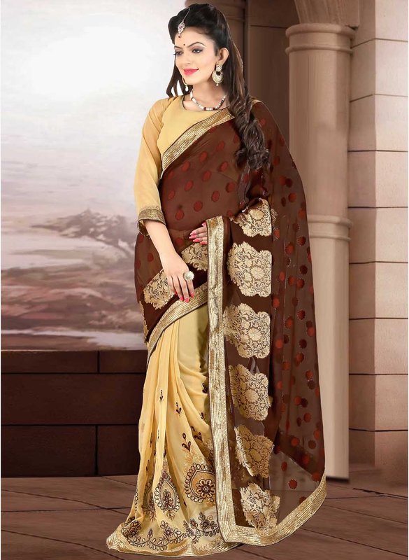 Blissta Brown Embroidered Saree