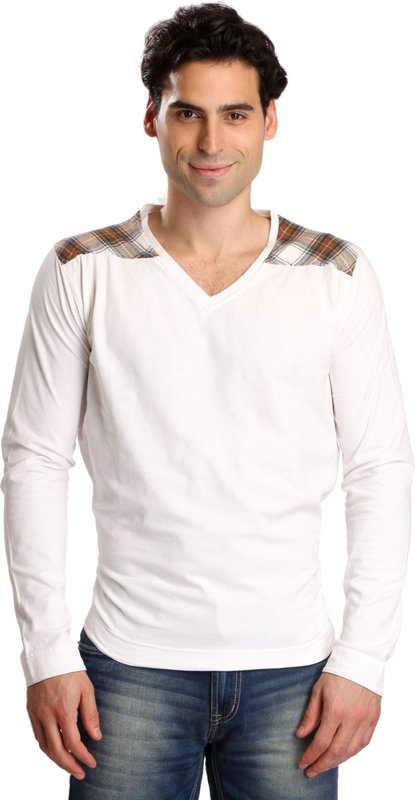 Bombay High Solid Men's V-neck White T-Shirt