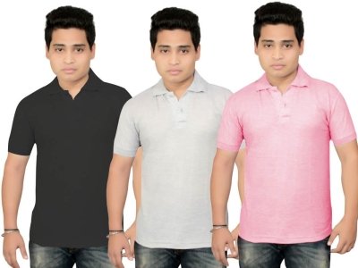 BrandTrendz Solid Men's Polo Neck Black, Grey, Pink T-Shirt(Pack of 3)