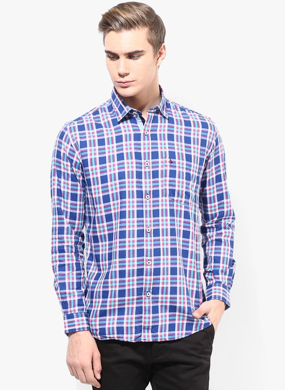 Jabong has British Club Blue Checks Slim Fit Casual Shirt for Rs.1,595.00 with Free Shipping