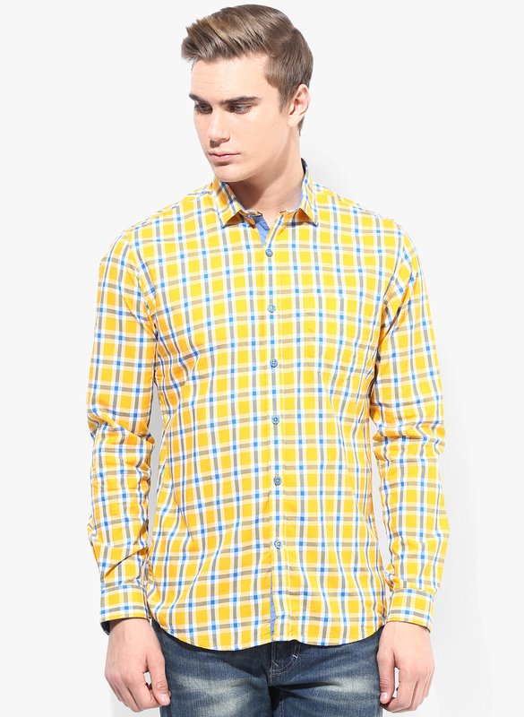 Jabong has British Club Yellow Checks Slim Fit Casual Shirt for Rs.1,595.00 with Free Shipping