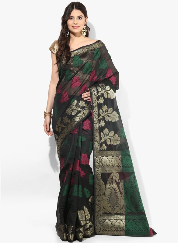 Bunkar Black Embellished Saree