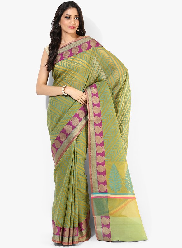 Bunkar Green Embellished Saree