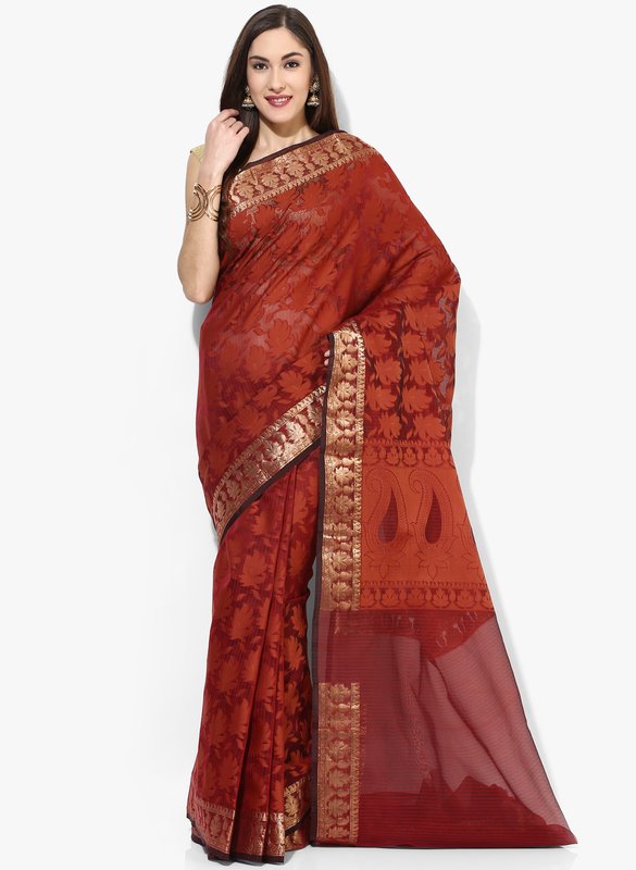 Jabong has Bunkar Maroon Embellished Silk Blend Saree for Rs.2,499.00 with Free Shipping