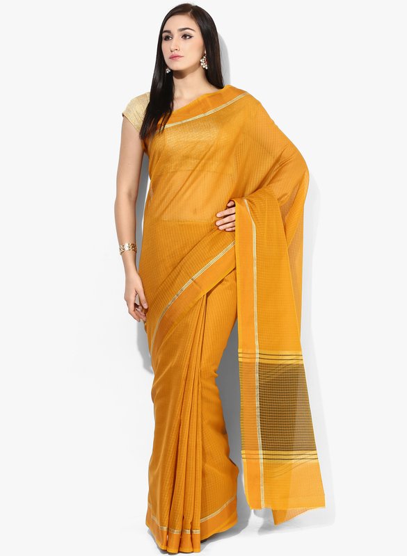 Jabong has Bunkar Mustard Yellow Checked Saree for Rs.1,399.00 - Rs.839.00 (Instant Discount) = Rs.560.00 with Free Shipping