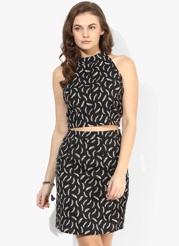 Jabong has Calgari Black Printed Crop Top With Skirt for Rs.1,499.00 with Free ShippingAttached Files