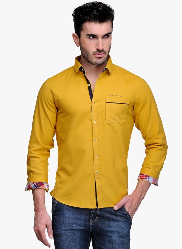 Jabong has Canary London Yellow Solid Slim Fit Casual Shirt for Rs.1,299.00 with Free Shipping