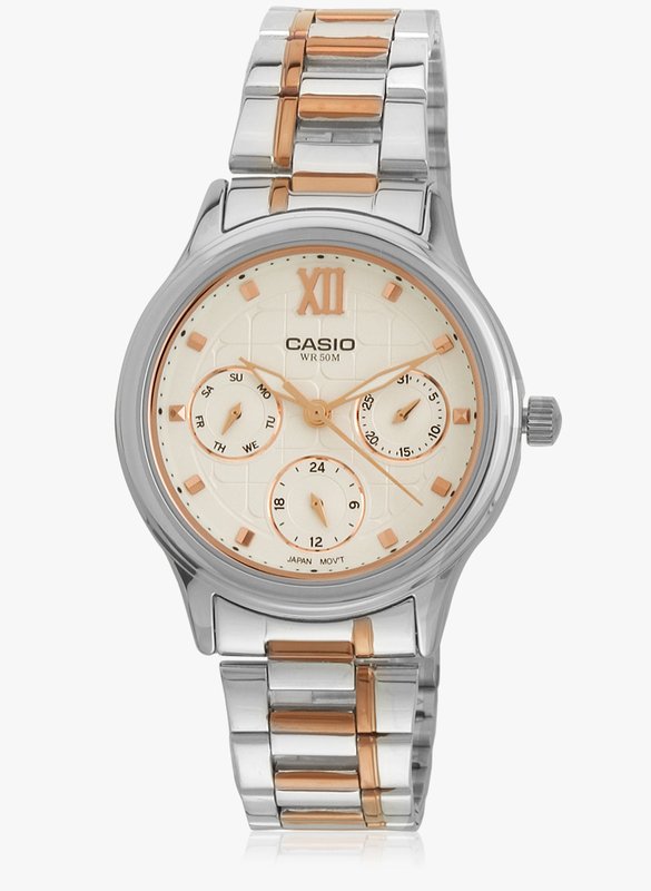 Casio Enticer Lady's Ltp-E306rg-7Avdf (A1002) Silver-Rose Gold/White Analog Watch