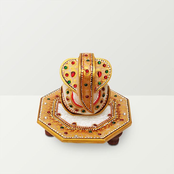 Chitra Handicraft Marble Chowki And Golden Ganesh