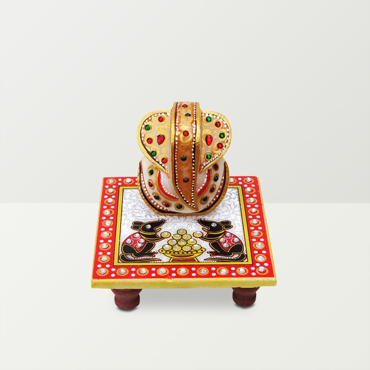 Chitra Handicraft Marble Chowki Ganesh Of Golden Color