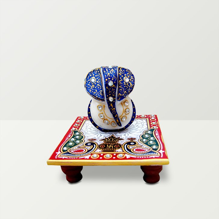 Chitra Handicraft Marble Chowki Ganesh With Kalash Print